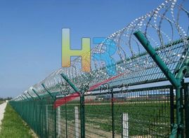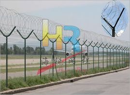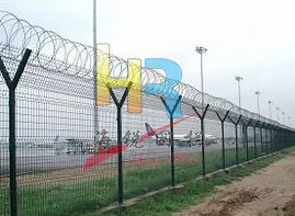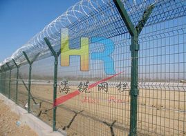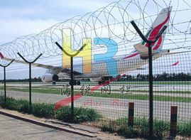 機場護欄網(wǎng)又稱作“Y型安全防御護網(wǎng)”,由Y型支架立拄,加強型焊接片網(wǎng),安全防盜連接件和熱鍍鋅刀片刺網(wǎng)組成,是強度和安全防御性級別很高的圍界護欄網(wǎng)產(chǎn)品。被廣泛應用在機場、軍事基地等高安全場所。這種護欄網(wǎng)的突出特點就是美觀實用、安全性高、防攀爬能力好,網(wǎng)體連接方式采用特制SBS緊扣件,有效防止人為的破壞性拆卸,橫向四道折彎加強筋,使網(wǎng)面強度顯著增加。